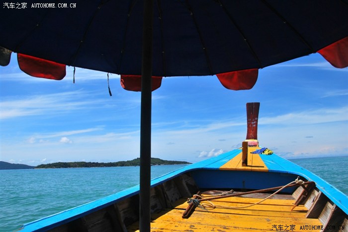 去PP岛的大船上,看到远处在下暴雨,我们这里晴空***