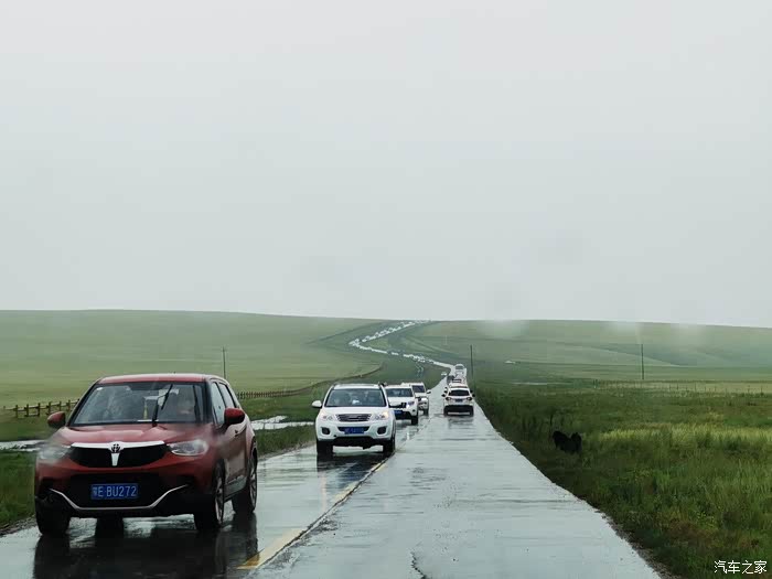 天公不作美,我们满怀期待前往莫日格勒河,但是从拐上小道开始,就一路风雨不断,在金帐汗景区边我们也冒着泥泞走到河边,但除了清冽的河水并没有迷人的美景,正当我们满是失落准备返程时,我们发现延绵不绝的自驾车都在继续往公路深处驶去,一半是普拉多、陆巡、路虎,剩下的都是各个省份的SUV和极少数的轿车,没有一辆卡车、客车、农用车。于是我们也来了兴致,临时改变路线,决定跟着延绵不绝的大部队继续前进,哈哈,一场说走就走的旅行!