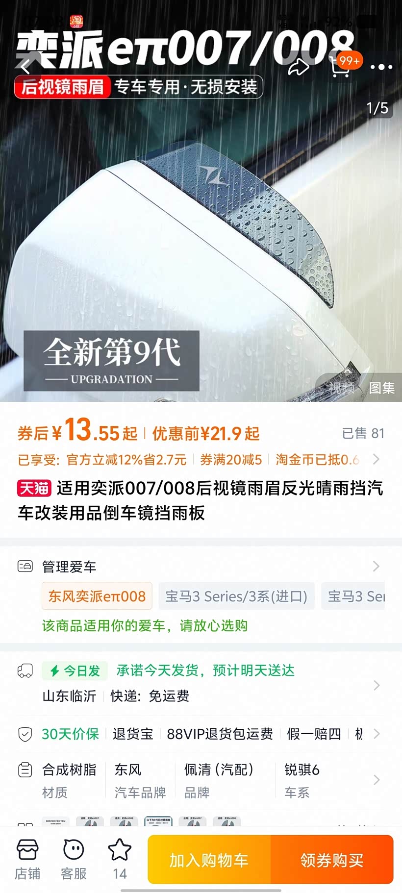 是雨眉和雨档我觉得很实用。而且这种透明黑色的,装上去之后挺漂亮的,基本看不出来。不影响颜值。还有一点切切注意,千万不要用他提供的助粘剂。那玩意儿会导致边条上的那个塑料掉色磨花。直接用双面胶贴就行了。