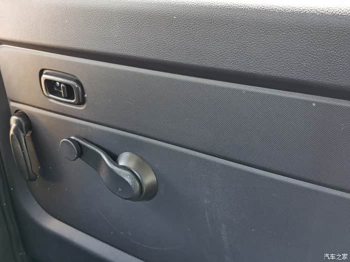 前排车窗是电动的,侧滑门这块车窗是手摇的,老实说不是那么方便,一个人在车上,要是下雨了后排车窗又没关,那还得靠路边停了车来摇,确实不太人性化,不过这种机械式的也有好处,对于厂家来说成本低,对于我们用车的来说不容易坏,除非你大力出奇迹,把这把都摇断。。。还有就是这侧滑门吧它特别重,比小海狮重,我这娇弱的肥臂又吃了力,开始坐上后排体验试乘,连关几次都没关上。。。唉,可能是试驾车的缘故吧