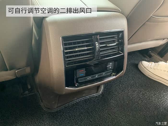 二排为双座模式,中间有条通道可到三排去,空调可自由调节,提高了舒适度。