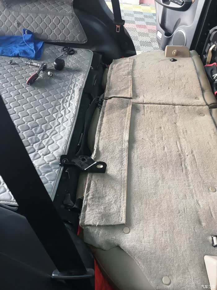 h5的后排座椅放倒以后和后备箱不一样平,有个台阶,相信很多车友都有困惑,想把它放平,有的用了磨盒,但是我不喜欢磨盒,占用空间,所以后排换了08年h3的整套座椅,虽然座椅没有原车的好,毕竟10多年车上的拆车件,但是为了舒适性,还是可以接受的