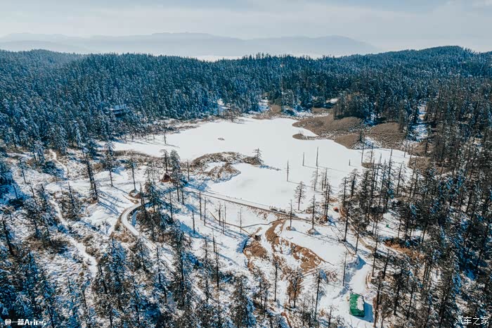 第二站是鸳鸯池,此时此刻山顶中心的湖泊,在大雪的粉饰下,有着冰清玉洁,风情万种的曼妙。