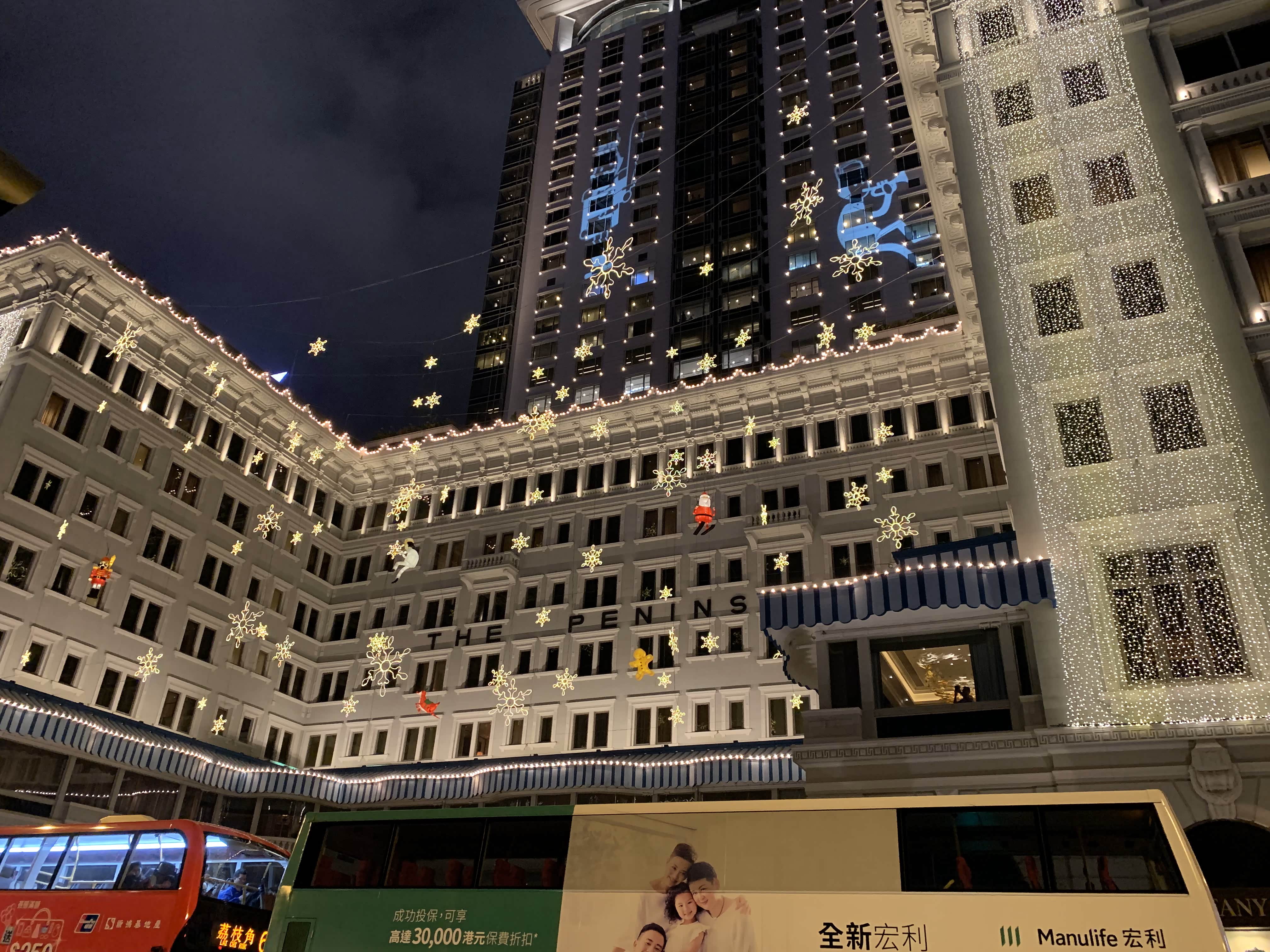 ? 拍摄贴士:圣诞灯光在晚上6点后最亮,建议傍晚开始拍摄;半岛酒店拍照建议选择马路对面或侧面,光线更佳。