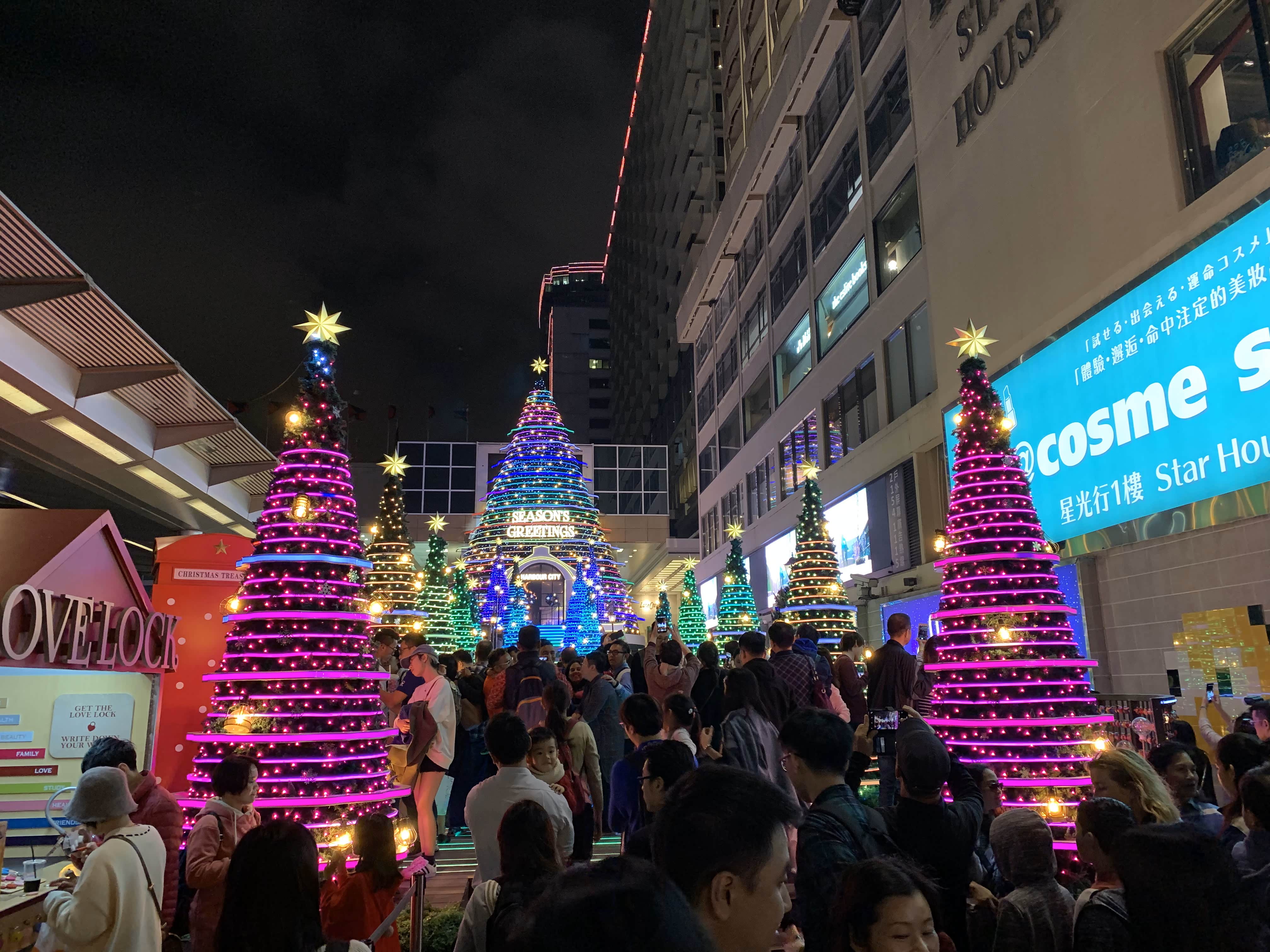 夜幕降临后,我们乘坐天星小轮过海,来到湾仔利东街,整条街都被圣诞装饰和灯光点亮,红色、金色的主色调让节日氛围直接拉满,走在街头,仿佛置身于一部浪漫的圣诞电影中。街边的商铺也纷纷换上节日装扮,橱窗里琳琅满目的礼品和甜品让人忍不住驻足。偶尔还能听到街头艺人弹奏的圣诞歌曲,温暖的旋律在夜色中回荡,为这段旅程增添了更多的惊喜与感动。