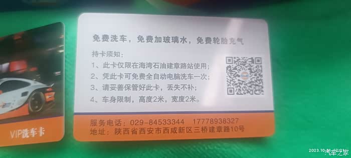 这次第一次在海湾石油加油,听说西安本地只此一家,网上关于海湾石油的好评还是较多,哪就去实地去体验一下。油站在未央区三桥街道建章路上,临近西三环三桥立交处,位置很优越,处于交通要道上,自然途经的车流量也是很大的。车到油站后,加油车辆较多,加油员安排指挥停好后,我一看油表价格92号油是8.18元/升,和外边的油价是一样的,于是问加油员,她说,这是表显价,用微信支付每升少付0.5元/升,付款时直接减免,晚上加油便宜0.8元/升。朋友加了300元的,问有没有赠品,加油员问拿油站给的小票了没?朋友说没有,直接用手机支付了。加油一边给其他车加油一边说,你不用管了,我自己去拿小票,顺便给了两小包抽纸,一个毛巾,两张洗车卡,还说你现在就可以去洗车了。她则一路小跑去服务台拿小票去了。由于洗车得等,于是我们直接上车走人。