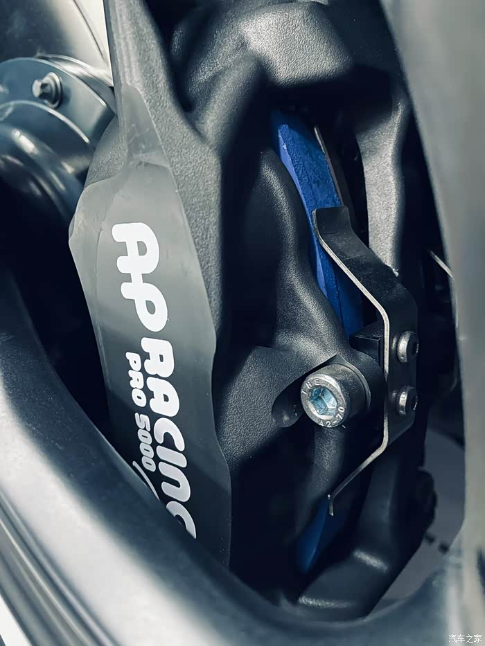 刹车:AP9440大四活塞配Endless MX72刹车片,竞技款卡钳散热快