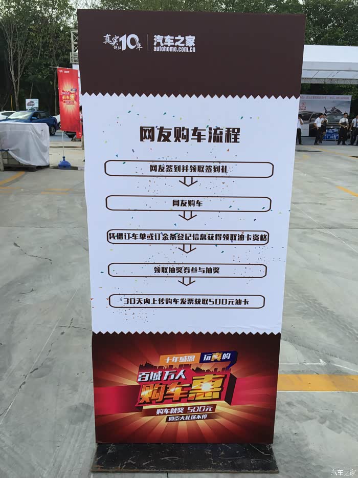 具佳弟了解:之家每一年都会举办一次大型的团购活动(当然小型单一品牌的团购活动也是经常有的)今年刚好赶上之家十周年庆特大铺人力组织前所未有的百城巡回大型团购活动。优惠程度以及各种福利也是前所未有的。很荣幸参加本次百城万人购车惠广州站活动,现场的安排非常的周全,进场签到后就有工作人员为网友解说此次活动的流程以及优惠政策,还专门为网友搭建一个大型休息帐篷,里面配备各种儿童游乐措施供前来参加活动的家人小孩休息、游玩。各种优惠政策更是让我们深深的感受到“家人”的那一份真情。这后面离不开他们艰辛的付出以及一直以来的努力。亲爱的“家人”们,你们辛苦了!感谢你们给我们广大网友带来的购车优惠以及购车便利!谢谢!