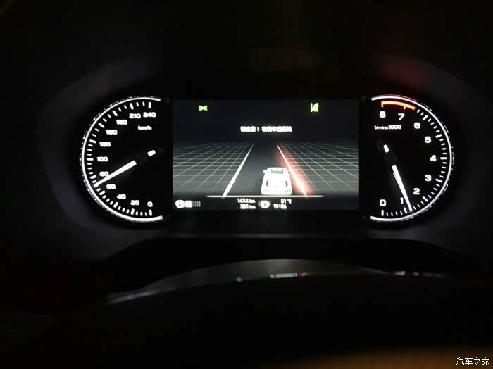 还有好玩的就是液晶屏了,液晶屏是和大屏以及手机三屏联动的,大屏的导航可以同时显示在液晶屏上。里面还有很多的信息可以查看。没有系安全带也会有图示在里面显示,同时发出声音提示。还有车道偏离、胎压预警、防撞预警都会有图示并且有声音提醒。