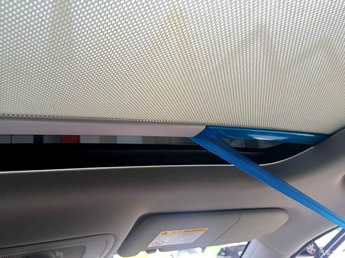 天窗的纱网布帘,边框有个蓝色的保护膜,直接撕掉了,车里面所有的塑料保护膜也都被我撕掉了,这些东西只是起到暂时的保护作用,既然车子已经属于我了那就赶紧去掉吧,不然在车里会挥发有害物质的哦!大家也要注意了,不要觉得贴着会保护车子,这样的塑料保护膜尽快去掉最好。对于前期担心的天窗隔热效果,我发现我的想法有些多余了。