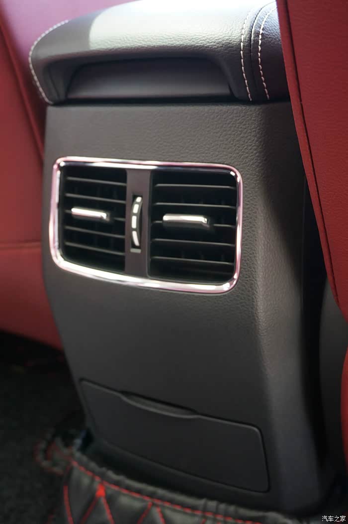 可前后移动的扶手箱盖板,后座双出风口。下面带有一个点烟器电源。