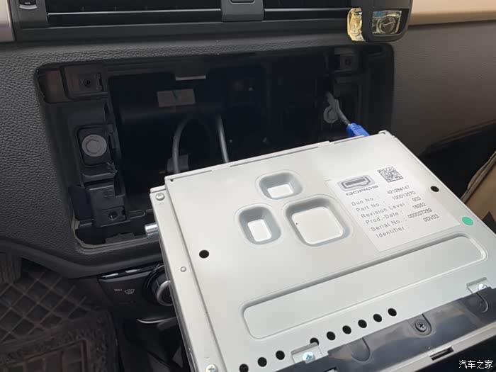 用t20内六角拆下螺丝孔的四颗固定螺丝。然后双手食指插进螺丝孔轻轻用力一拉车机就下来了。