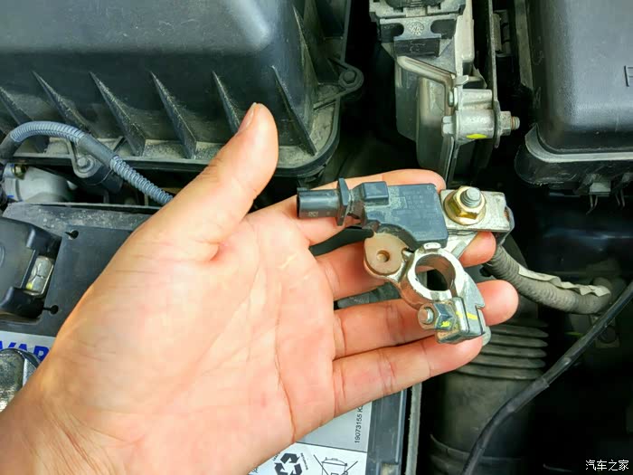第一步完成后,熄火,打开发动机舱,拆掉电瓶负极