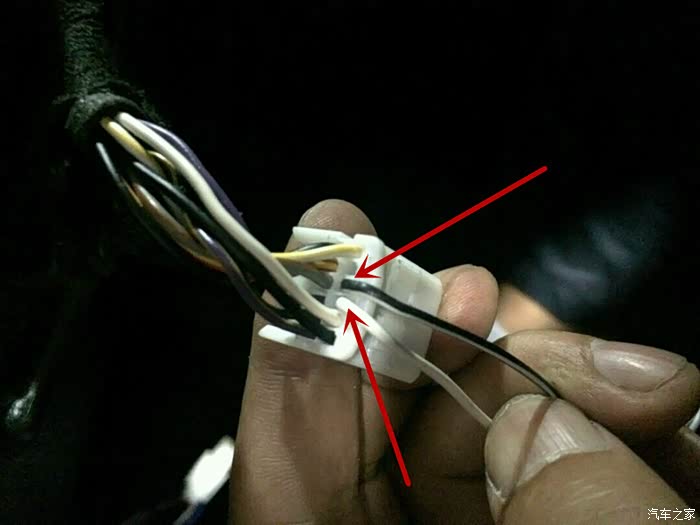 然后把预留的两个针脚插进去就好了 ,看好位子和线色,不要插错了。这个接头位子看下图箭头。
