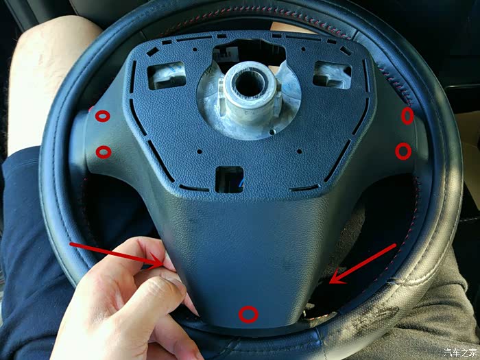 这一张里面标注的卡环的位子,按着顺序用一字螺丝刀向内拨动,然后就可以拿掉气囊总成了。