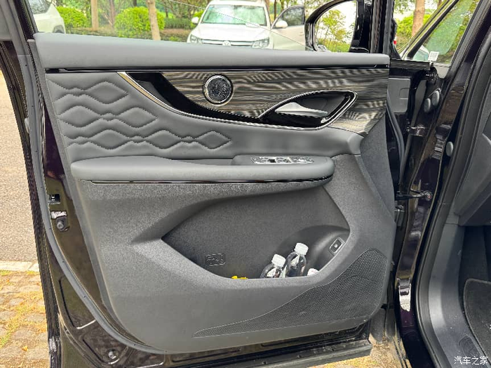 一家子刚走没两步,想起有几瓶水忘了拿,我返回去拿车门上的水。前几天刷到视频,车上放水,容易滚出来影响踩刹车,其实也分车,像V9这种很深的储物格,水瓶放得很稳当基本不可能滑出来。