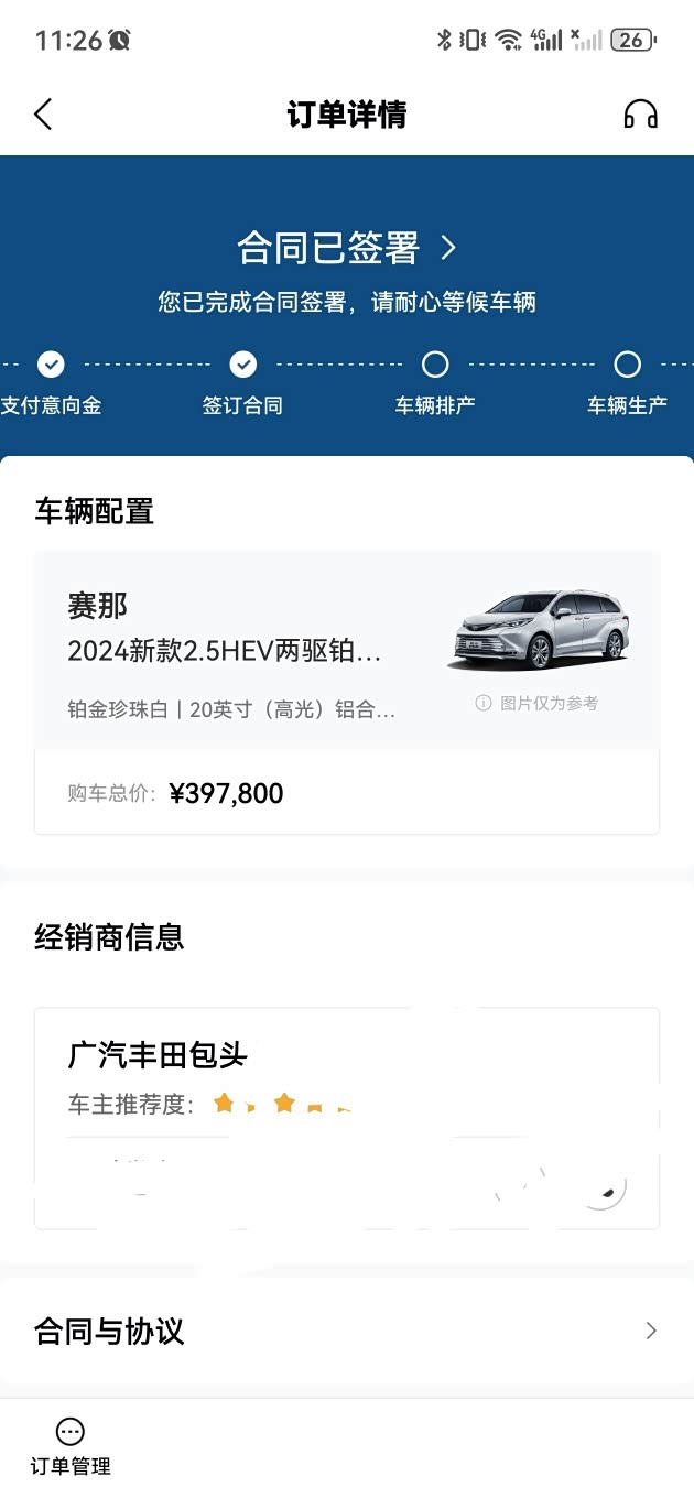 我都想退订,在凑乎开一年艾力绅,等25款没有航空座椅的赛那四驱铂金版啦