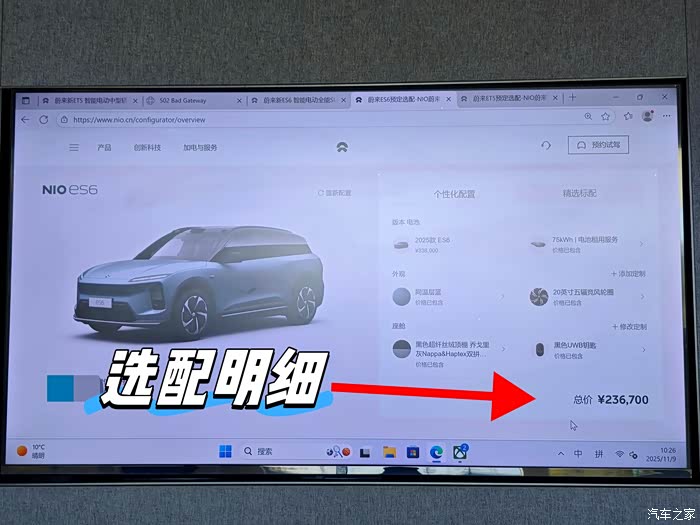 ES6体验完之后,上展厅的选配间,选了一下我理想状态下的ES6,我就加线选了NOMI、女王副驾这两个,还选了Bsae租电池方案,还有交流放电口没选,兑换成48次换电卷了,这个对我很实用,其他对我来说无关紧要,最后算下来价格在23.67万,先回去给媳妇商量下,大家觉得这个价格咋样?保险在7500-8000之间。