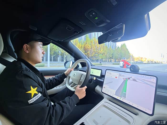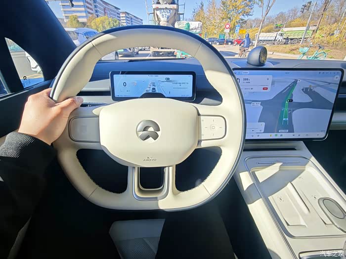 我还特意感受了这车的辅助驾驶,根据导航辅助行驶,也就城市NOA家到公司端到端。辅助行驶过程中,前面遇到车辆缓慢行驶会自动打转向灯变道,包括自动加速和减速,前段给我感受还不错,有点替代人开的那种感觉。