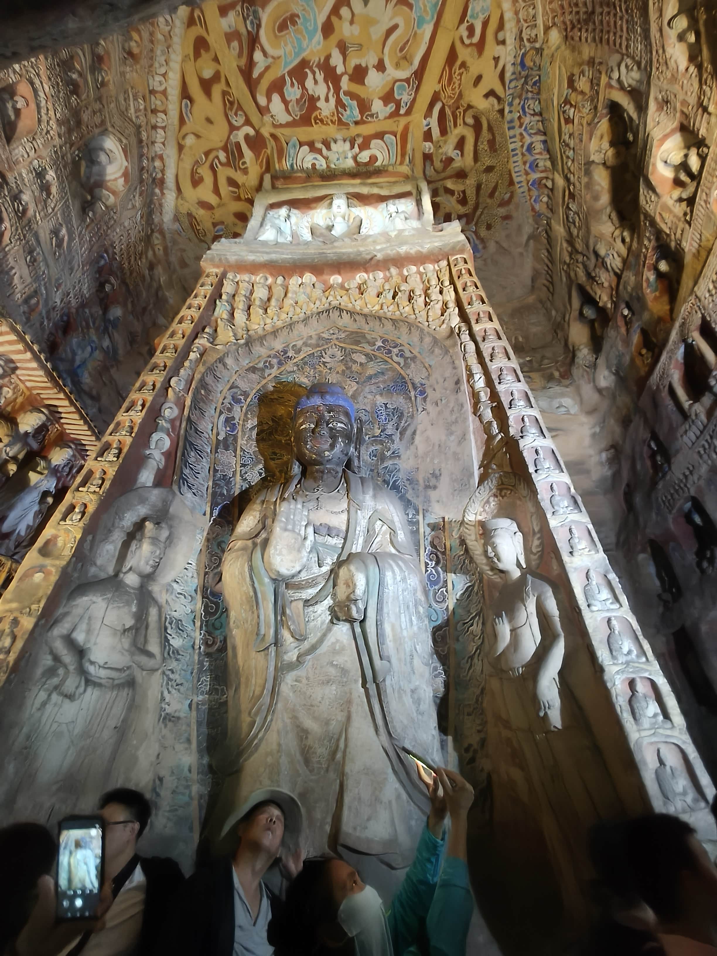 我按照推荐的游玩路线,从1号窟开始参观。走进洞窟,一股历史的气息扑面而来。洞窟内的佛像有的高大雄伟,有的小巧精致,他们的神态各异,有的面带微笑,有的目光深邃,仿佛在与我进行一场跨越千年的对话。在5号窟,我看到了那尊著名的彩色大佛,佛像高达十几米,色彩鲜艳,虽然历经千年岁月,但依然光彩照人,令人震撼不已。6号窟更是堪称北魏石雕博物馆,洞窟内的雕刻内容丰富多样,有佛传故事、本生故事以及各种精美的装饰图案,每一处细节都刻画得淋漓尽致,让人目不暇接。