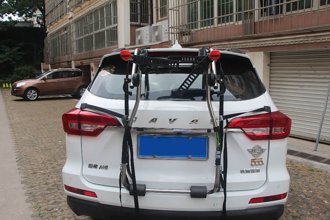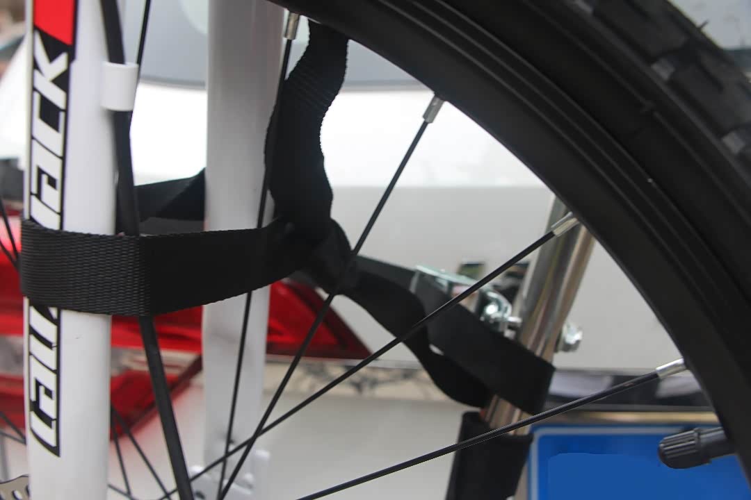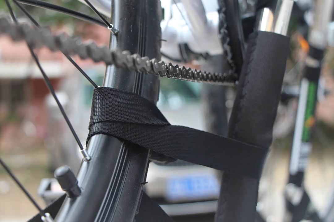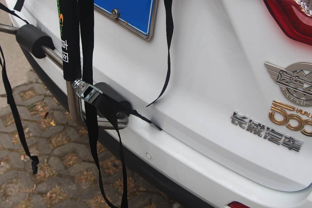 安装的自行车架是六点位置挂钩,上面两个,左右各一个,下面两个,这样全方位固定住。安装好以后必须检查一下,是否挡住车牌!这一点尤为重要,如果挡住车牌,交警拦住可是不轻的处理。