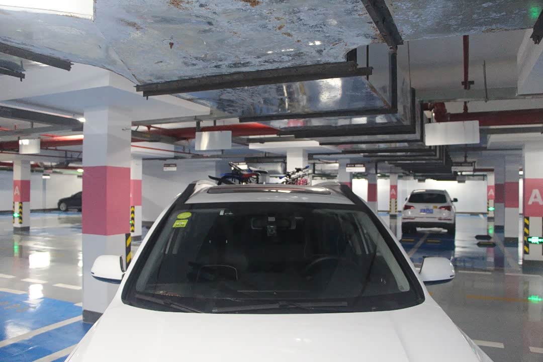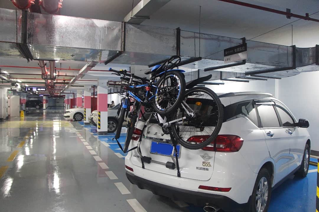 安装完毕!但是这种安装方法一辆自行车还好,两辆就会档车牌!后来做了一个调整,加高了位置,把孩子的自行车也挂上去了,同时开去地下车库做了一个实验,高度不超2米,地下车库内不影响。