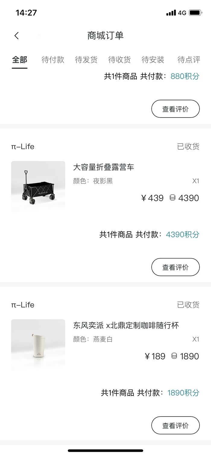 这里不得不点赞一下东风奕派APP商城,加入车主群的时候,很多老车主就提醒我们可以做一做里面的任务,攒攒积分,可以换超多好东西。于是,从去年开始和家属两个人就开始做各种任务攒积分。两个人的账号积分后面陆陆续续换了不少好东西,可以说这次我们的露营装备差不多全是奕派赞助的。