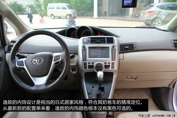 【内饰方面】可以说丰田逸致是非常用心,任何一个细节都不放过的:大胆创新的使用中置仪表盘,前后排各种储物空间,双层手套箱,扶手箱可以放单反,车内广角观察镜,后排小桌板,12v有3个等等,前面都已经图文一一解说过了。