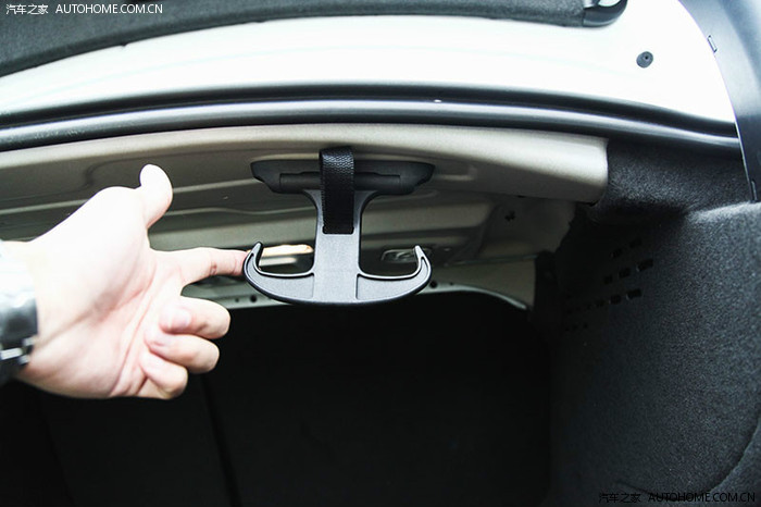 后备箱挂钩,这大热天儿,回家路上买个瓜放后备箱里怕它到处滚,就可以把装西瓜的袋子挂在钩子上,固定它。