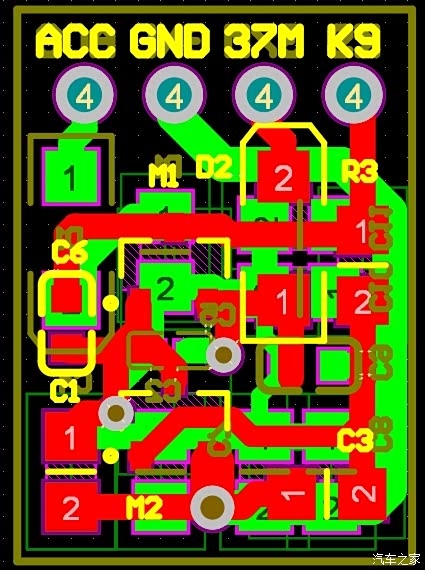 多功能集成板(集成有:后备箱油箱控制、脚踢感应控制、氛围灯逻辑控制、日行灯逻辑控制、四路延时电源输出控制、四路外车门把手迎宾灯控制、方向盘加热控制、音量随速增减控制)