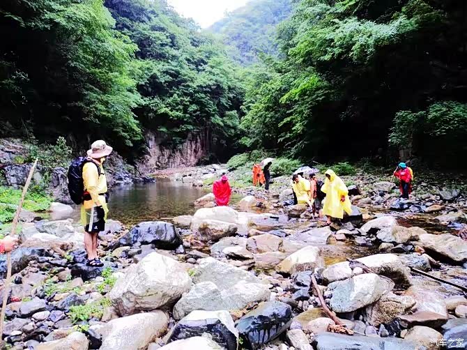 在沟里遇到了阵雨,石头更滑了,我们小心翼翼地在沟里行走,防止出现安全事故。