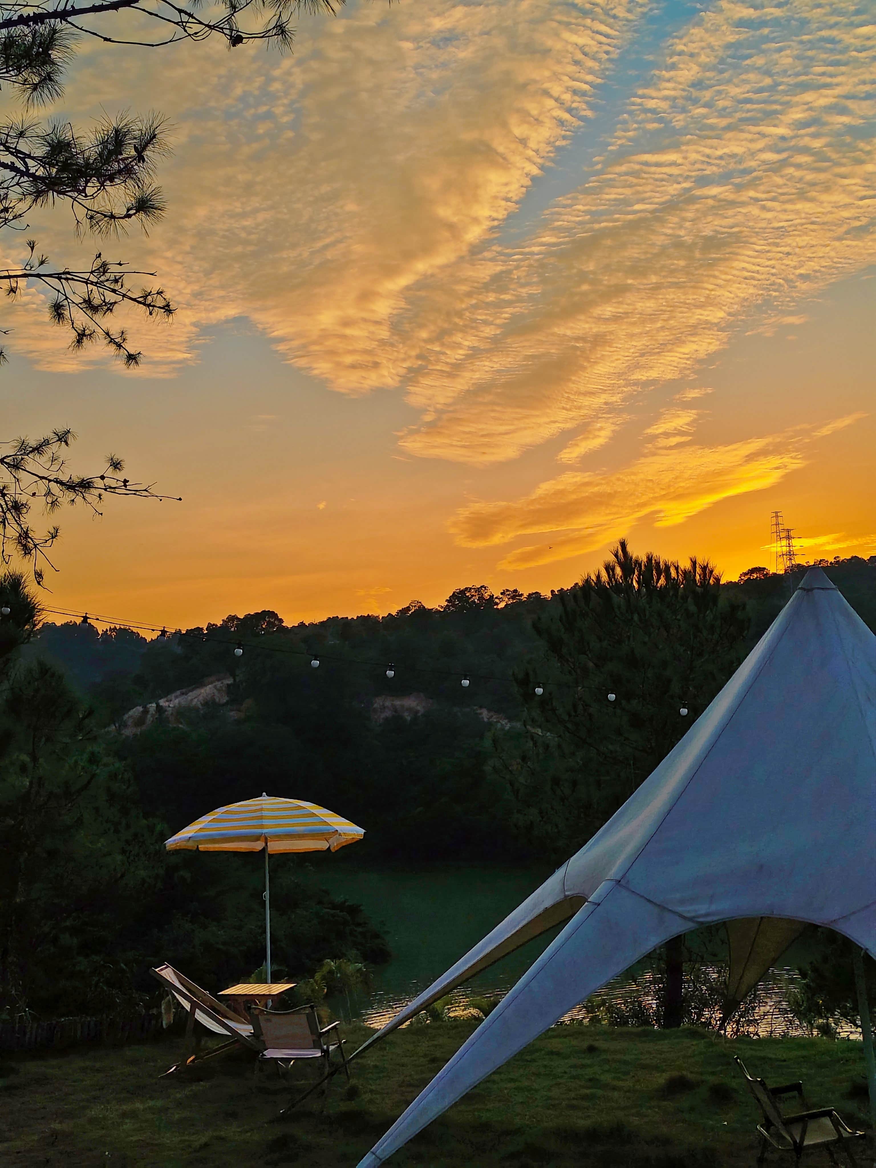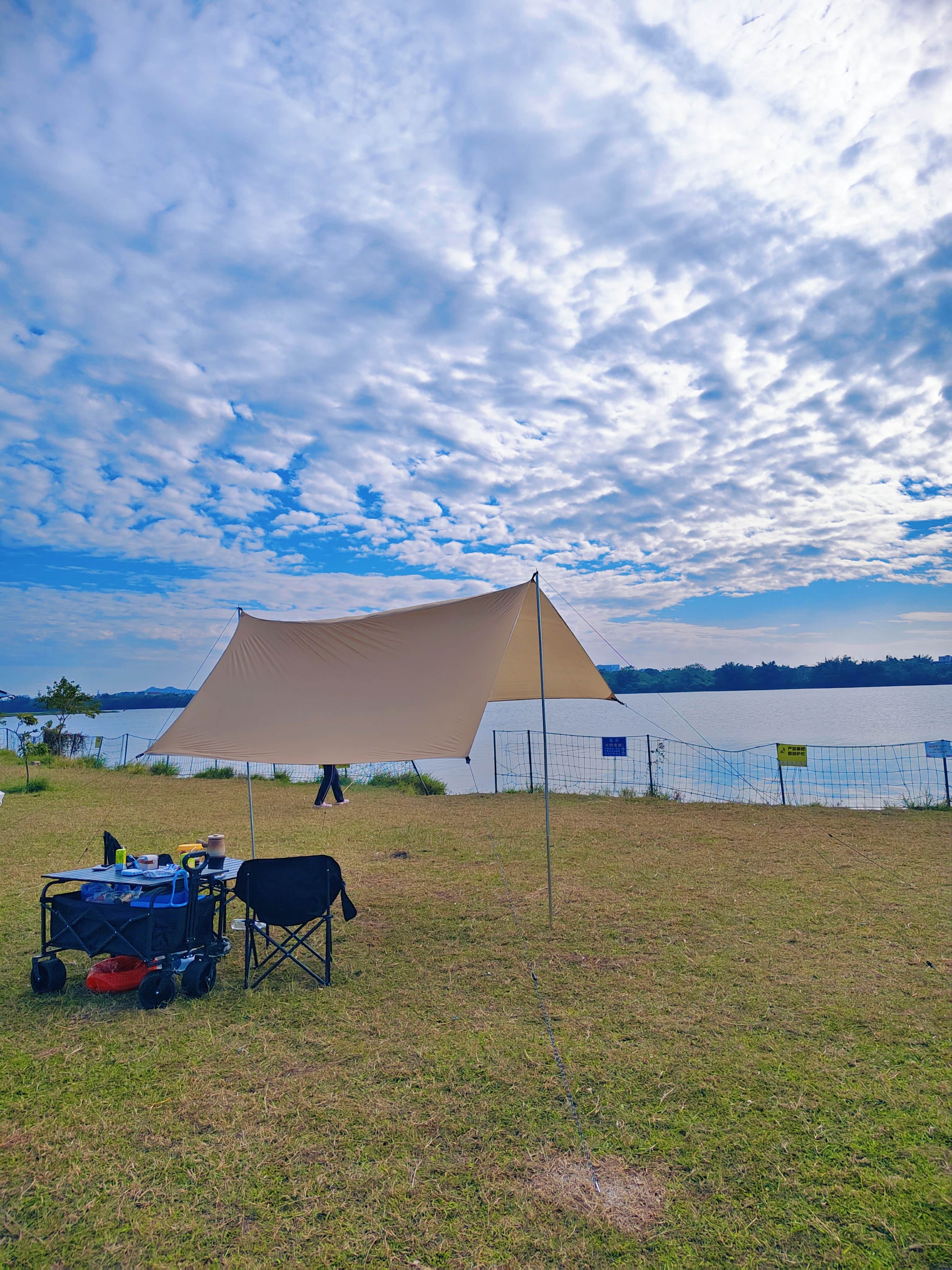 现在的我,会提前查好目的地的天气与地形:开着车沿溪谷找平坦的滩涂,亦或是沿着湖边找适合露营的草地,把天幕搭在树荫下遮去午后的烈阳,支开露营桌椅,把火锅\烧烤\围炉煮茶等自己想吃的东西整齐摆放,再打开音箱放着自己喜欢的音乐,就这样吃着喝着,吹吹风,看看云,悠闲地等一场日落。