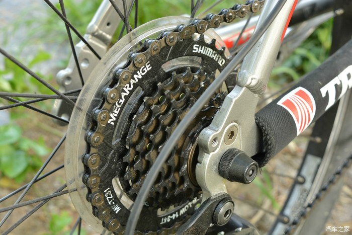 还是禧玛诺,链条脏了点,因为我烦了个错误,我用车保养完剩下的机油自己保养了下,人家说那个机油不行了,太粘稠了,容易形成油泥,给大家个教训吧,不过也不影响骑行!