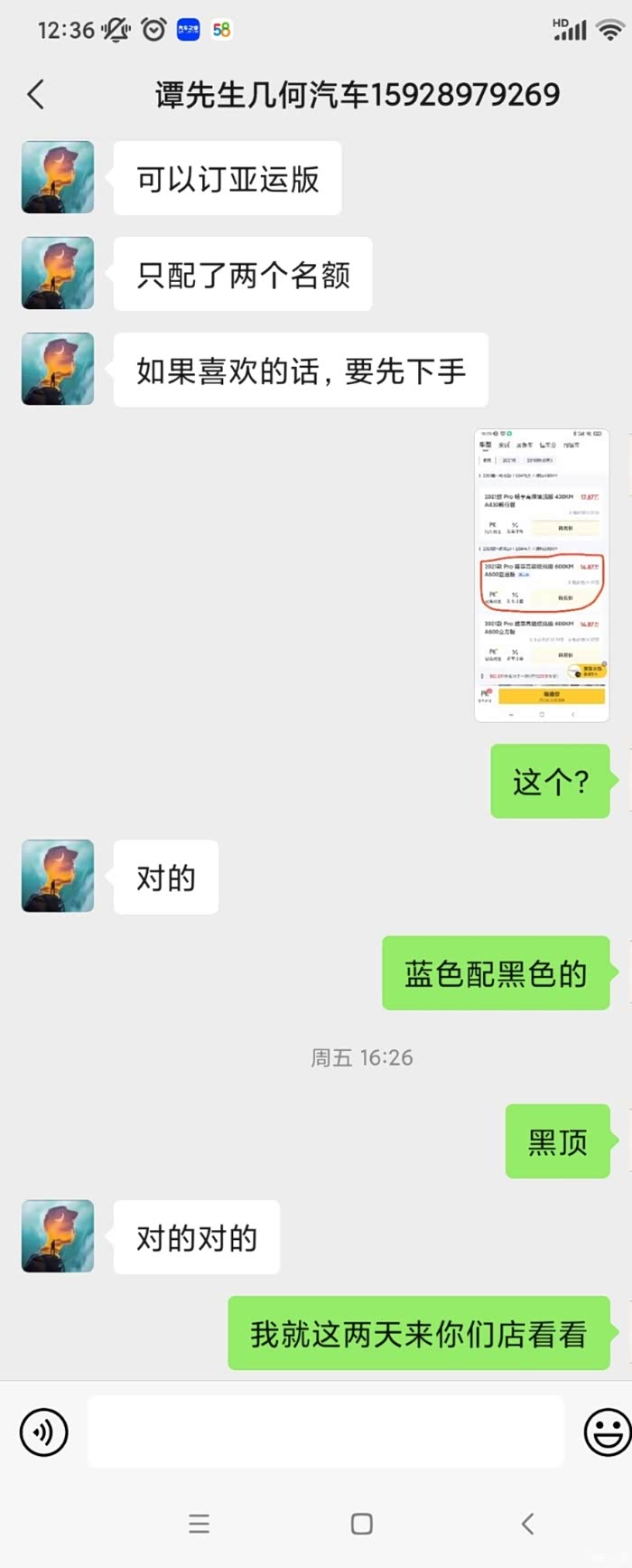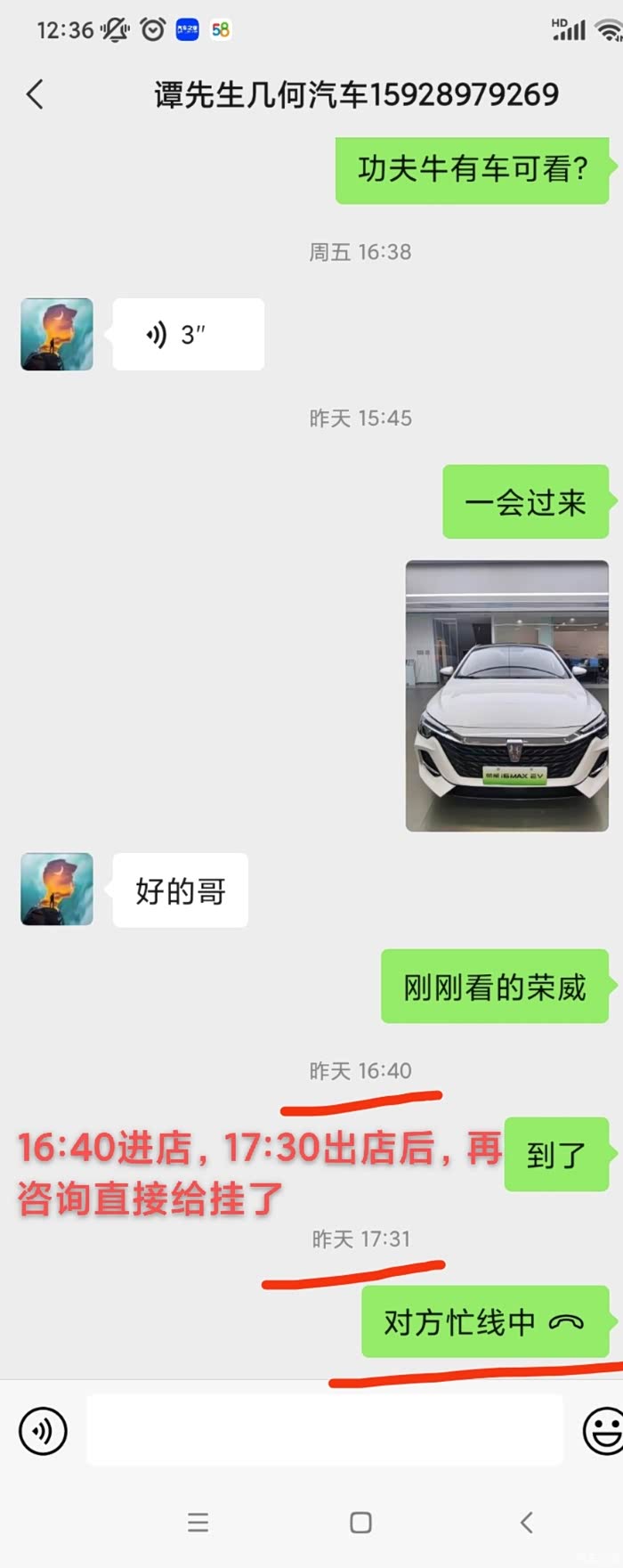 而且,面谈中,销售看我好像不会接受这7500的加价,态度很冷淡,我出店后再语音问他个车的咨询,直接给挂了。