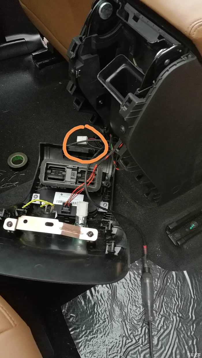 原来是这样,一个电源接头,以后应该建议厂家改进一下,增加后排的电源借口,取消扶手箱的电源接口,不实用,也不安全。