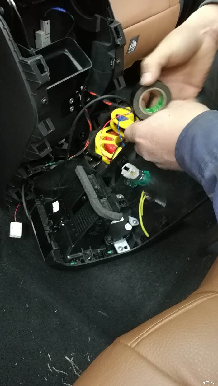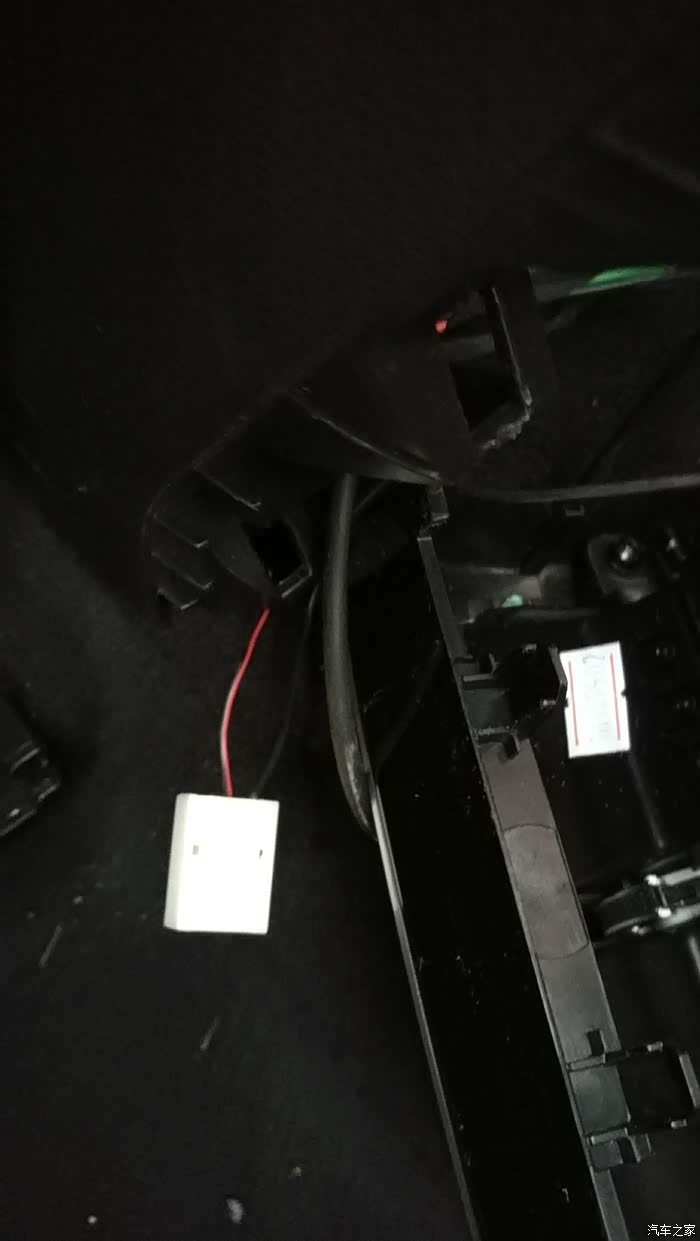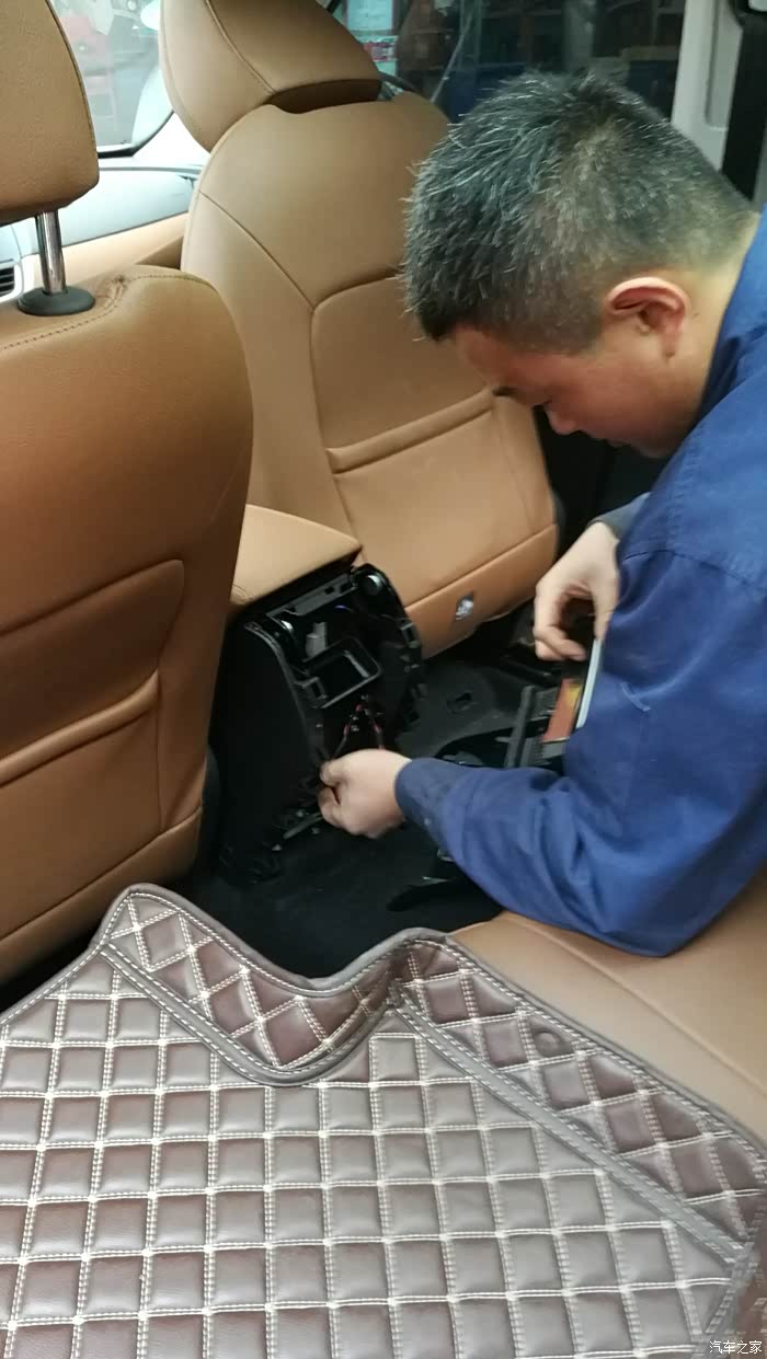 嗯,扶手箱里基本鸡肋!唯一遗憾的是没有在后备箱的预留口里找到线头!这个得拆后侧板,不好弄,从中间引线师傅说不安全,这个以后再说吧!我计划找块电瓶放后面接个点烟器