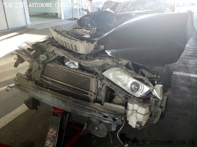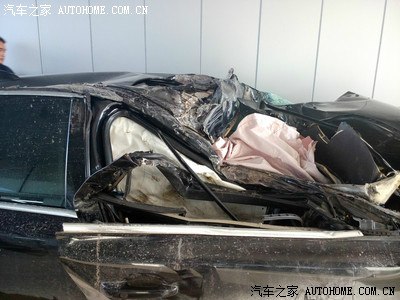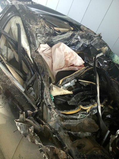这张正面就非常清楚,前防撞钢梁居然毫发无损,因为根本没有撞到它,这回A柱当了防撞钢梁了,要不是沃尔沃的A柱是硼钢的,那本地四年前“宝马3被削顶”的惨案就重现了……