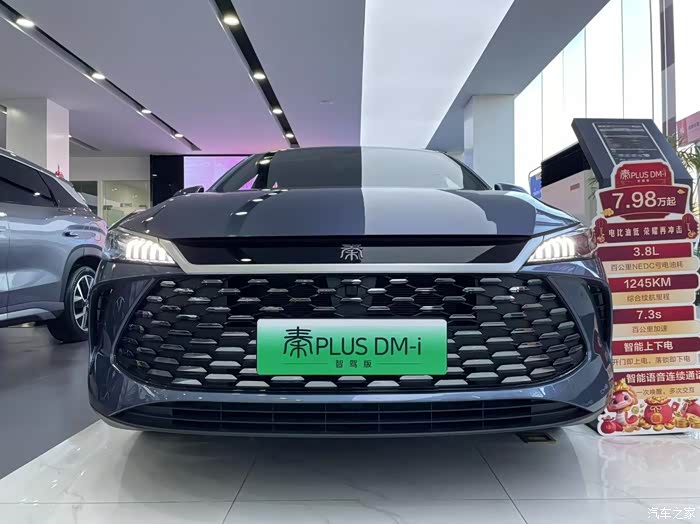 去王朝店看了第二代秦PLUS智驾版,当场就悟了什么叫"青铜价格,王者体验"!这车往展厅一停,龙吟阔境前脸配中国结尾灯,活脱脱一条会发光的东方龙。插混版的龙鳞格栅杀气腾腾,纯电版封闭前脸科技感拉满,连导流槽都设计成外八字,这细节怕不是请了风水大师操刀?