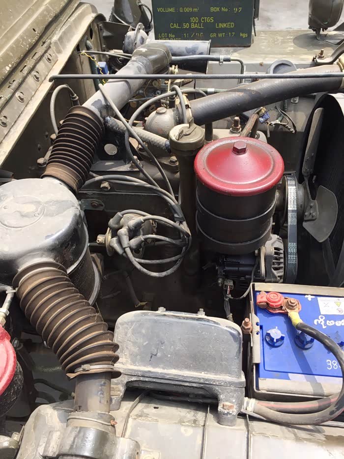 偶然的机遇认识了她的主人。老板收藏了四台威利斯,因为有一台车忘记关电源了,把点火系统击穿了,无法启动,朋友让我去帮忙看看,能不能修好。第二天我就约了我们河马兄弟JL车友群里的几个小伙伴一起去看稀罕物了。见到威利斯抑制不住激动的心情,先试驾了一圈,真有点开拖拉机的感觉,方向很沉,减震硬邦邦的,发动机保养的很好,一次点火成功。试驾过后,就赶紧修复那台哑火的车,是一台1952年型号的威利斯,点火线圈已经烧焦了,主人已经让修理工拆下来了,他们事先已经修过,不成功。我把他从美国采购回来的新点火线圈安装到位。考虑到点火线圈已经击穿了,电容器估计也烧毁了,为了更好的点火,所以我就并联安装了两个电容,白金倒是烧蚀的不严重,从新用水砂纸打磨了一下。最关键的就是火花塞,由于这台车是原装的点火系统,高压线、点火线圈、火花塞都是丝扣连接的防水设计。火花塞目前采购不到,只好卸下火花塞放到液化气炉子上烤了一下,清理了里面的积碳,装车后一次点火成功