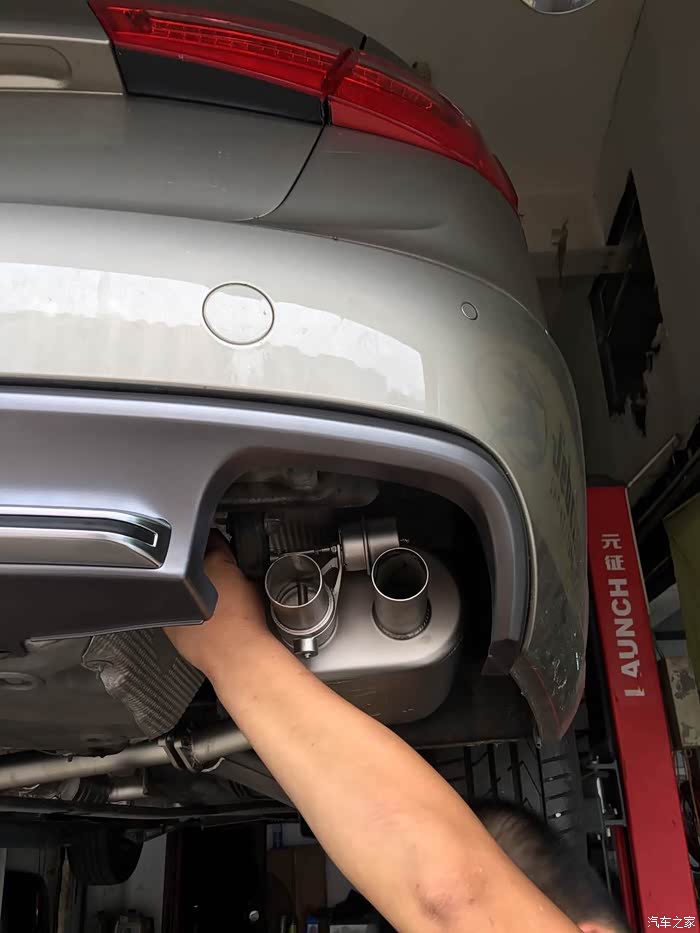 今天最新更新全段,完全完全比之前提升一个档次!!轻点油门就有声音,过3500啪啪的放炮声,过4500,基本发尖找到跑车的感觉了,炸街必备。这次经历,告知A4,A6改排气的朋友,这2款车原车有2个消音包,改排气的时候一定注意!拆除2个消音器!!!否则出不了完美的声音!