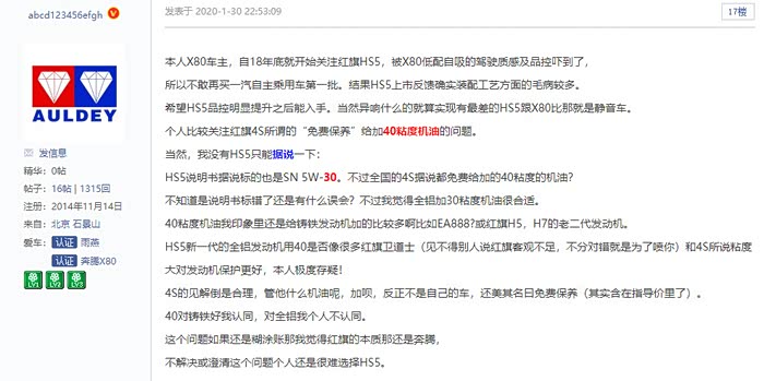 红旗这个机油不配套的问题真的很低级,很奔腾(我就是奔腾X80车主)