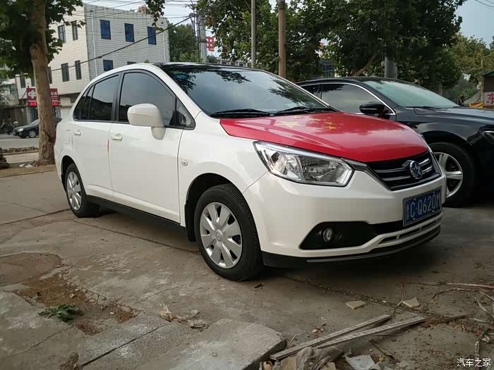 正面,火红的国旗贴引擎盖,成本二十几元的车身改色膜自己贴的
