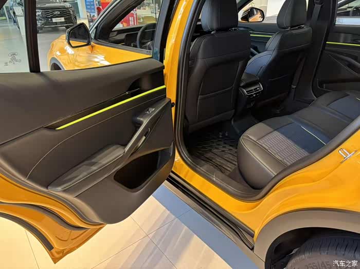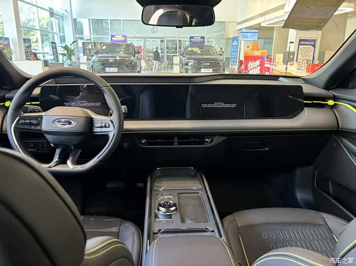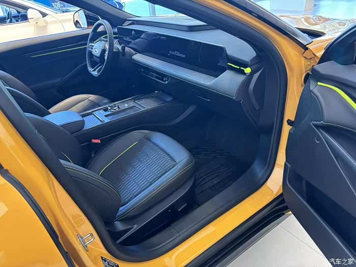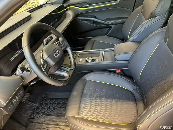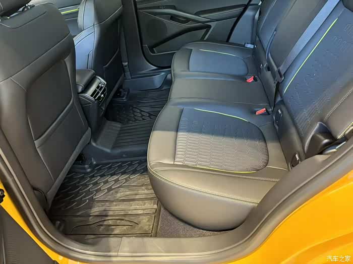 最吸睛的就是27英寸4K大屏,分屏功能绝了,主驾看导航副驾能追剧,以后自驾游也不怕副驾无聊。不过我有点担心大太阳下会不会反光?今天试驾的时候没注意到这个问题,有车主来说说吗?这个版本的座椅是织物和皮混搭材质,绿色缝线看着像电竞椅,包裹性超强,我183cm坐前排,头顶还有一拳余量,一点不压抑。