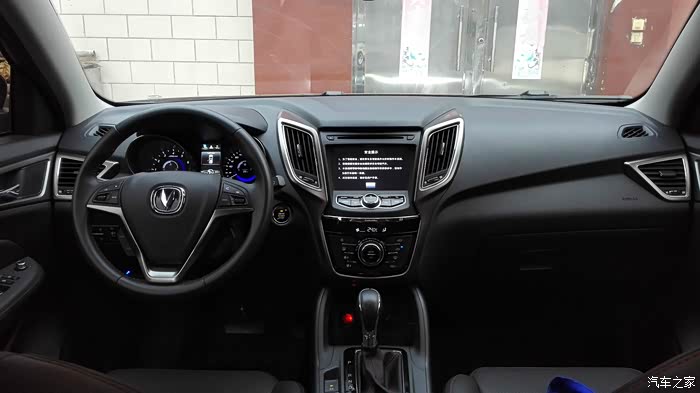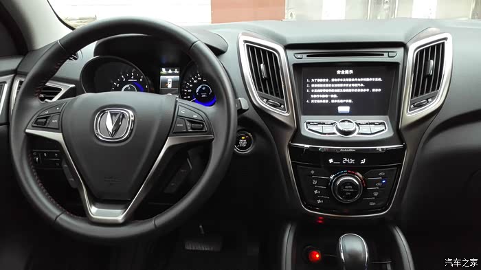 对于中控部分,其实是我最喜欢的部分之一,有朋友说像八戒,好吧我承认有点像不过我还是非常喜欢,在2个菱形空调出风口的中间配上7寸大屏幕导航这更显示了小7的尊贵和奢华。在晓7空调部分,按键规整,按键手感非常舒服,旋钮式温度调节及自动空调更显高端档次非常用心的设计。小7的多功能方向盘滚轮式音量调节及蓝牙电视都是非常实用非常大气的设计,定速巡航功能超级好用,方向盘4项手动调节更显人性化设计。仪表部分为炮筒式设计,中间搭配3.5寸彩色小屏显示3种模式,1:为常用模式,分别是油耗、小计里程A、B、巡航速度显示,胎压监测等。2:整车状态模式,它是查看车子在行驶过程种有无异常显示。3:导航模式(有箭头和公里数提示)。小7的乘坐空间非常大,后排座位放到后与后备箱持平,能够满足日常的货物运输及小憩,长安人性化设计真心不错,大赞!!!