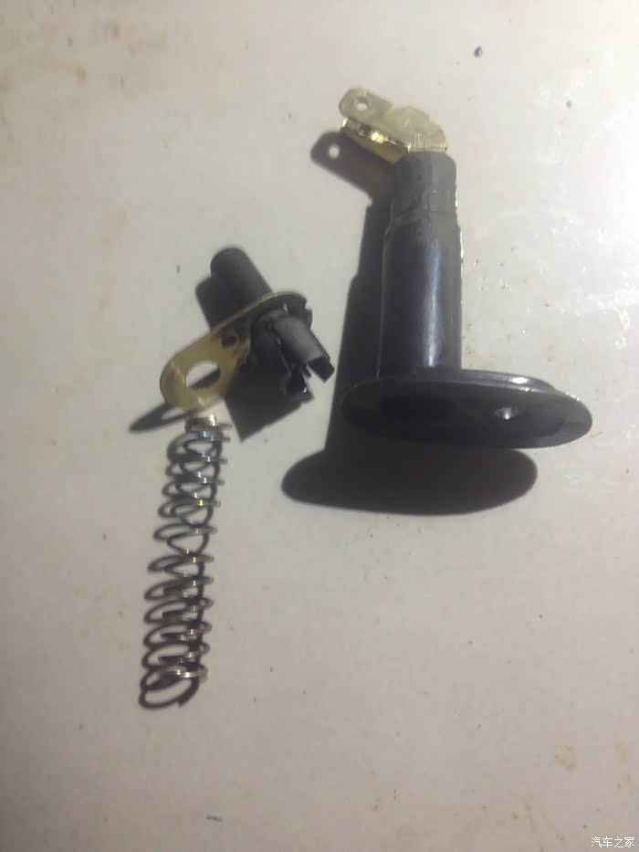 这个小东东是手刹开关,偶然间发现指示灯不亮了,留顺手把它拆了下来,没有什么大问题,就是弹簧时间长了,弹性不够有电短了,解体把弹簧拉长装回正常了