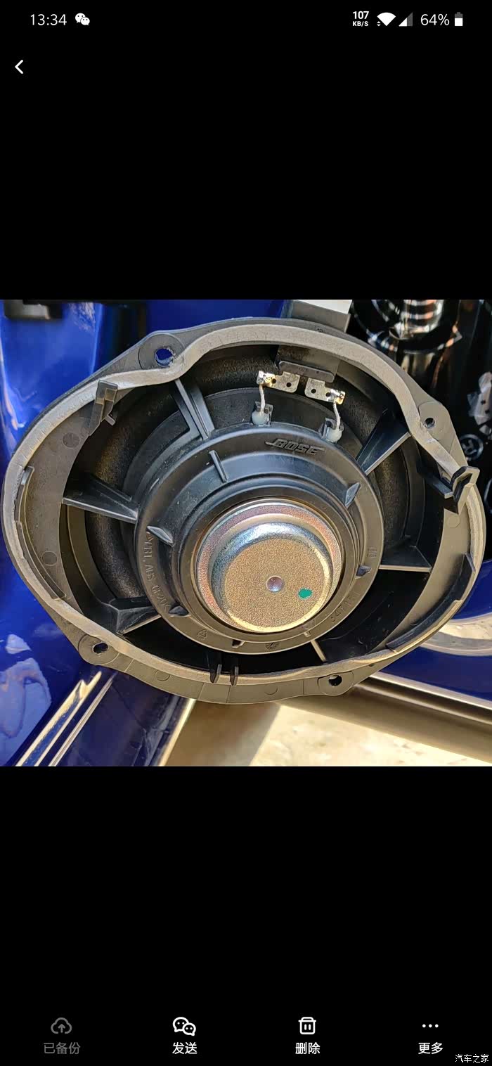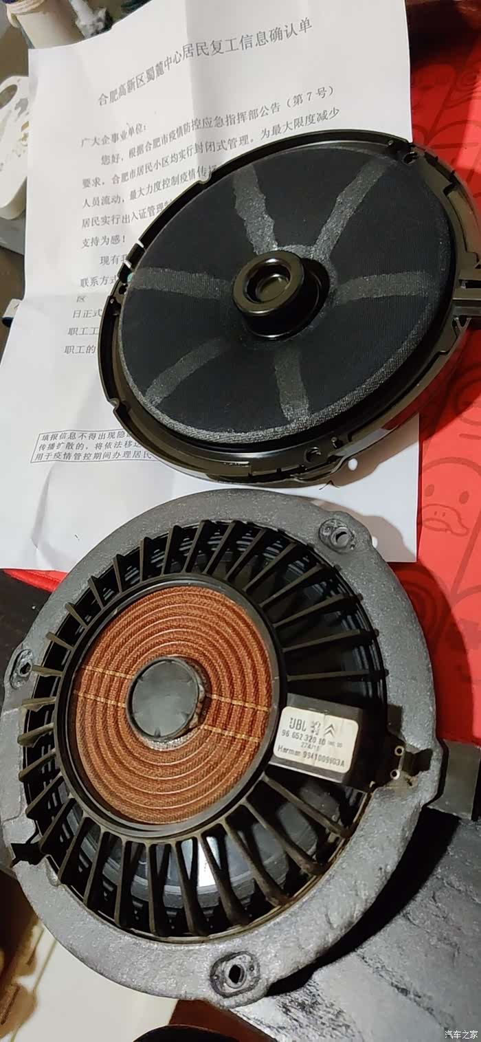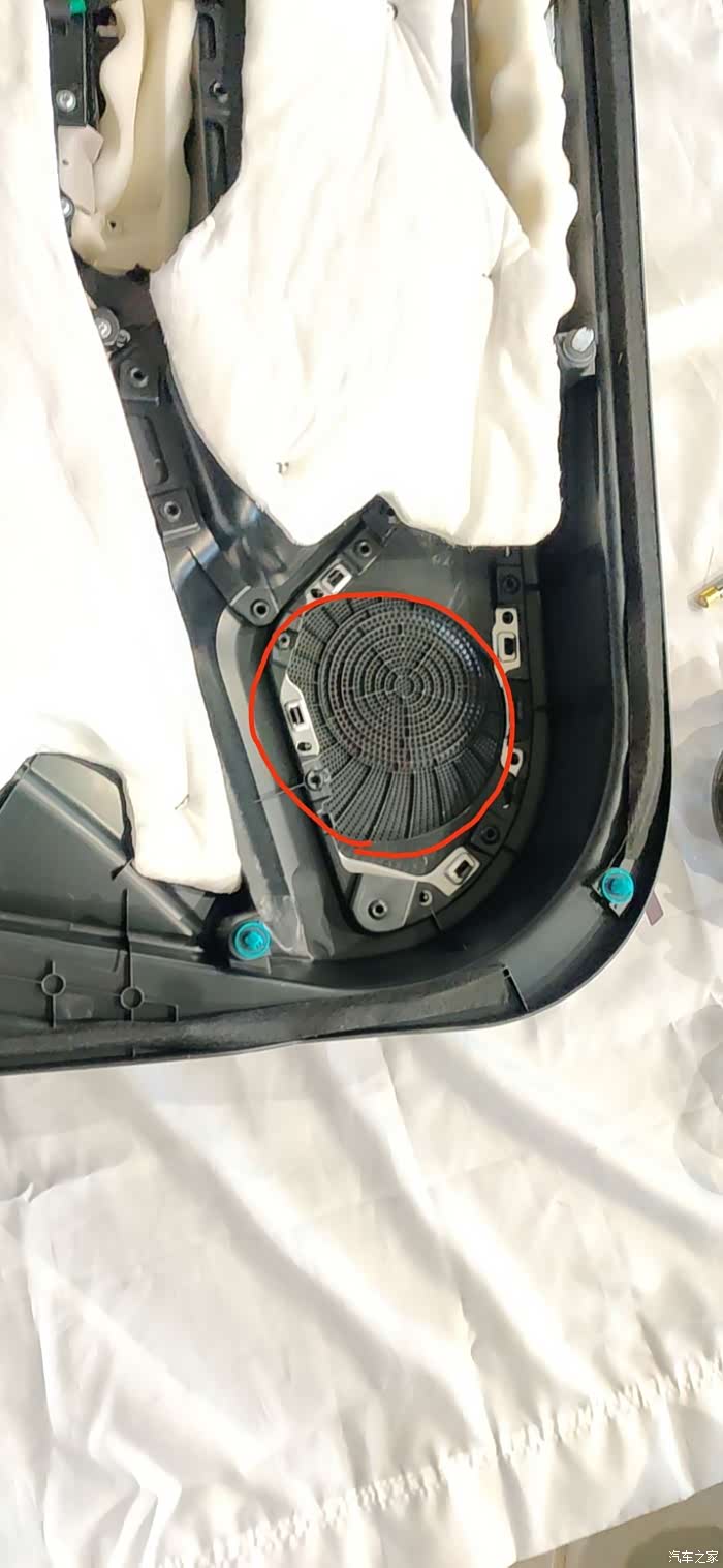 上次做四门隔音的时候, 把四个车门的喇叭拆开来看了下,我是高配bose的车型,前门的喇叭是6.5寸泡棉边,羊毛盆的,后门喇叭是油布边,纸盆的,尺寸比前门小点,两款喇叭都是钕磁的,但是明显前排的磁钢要大不少,当然这些材料、尺寸差异带来的直接影响就是后排喇叭音质不如前排喇叭的