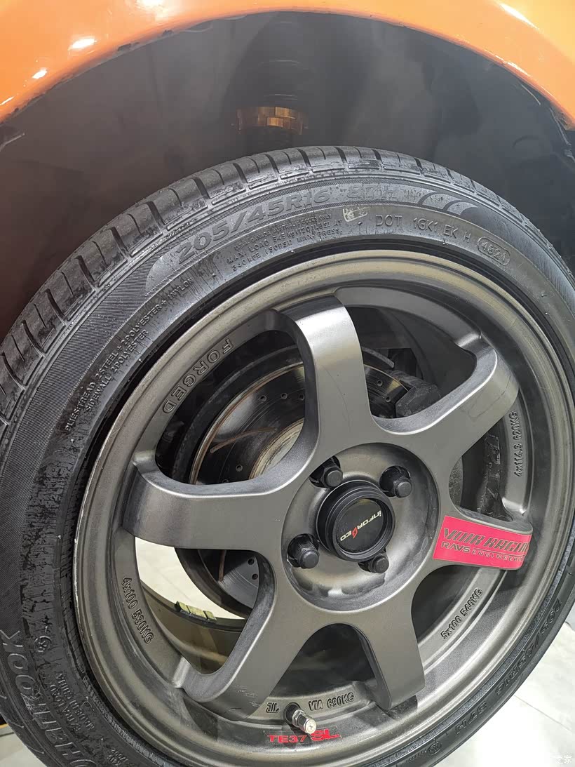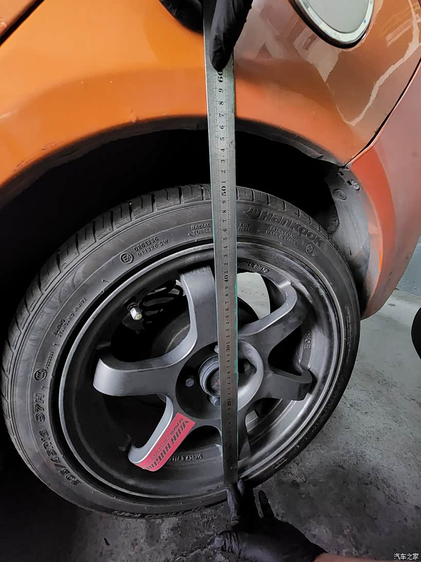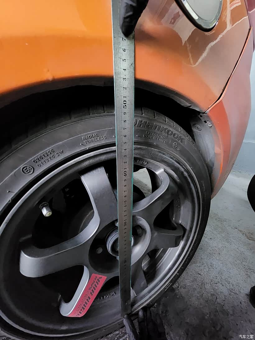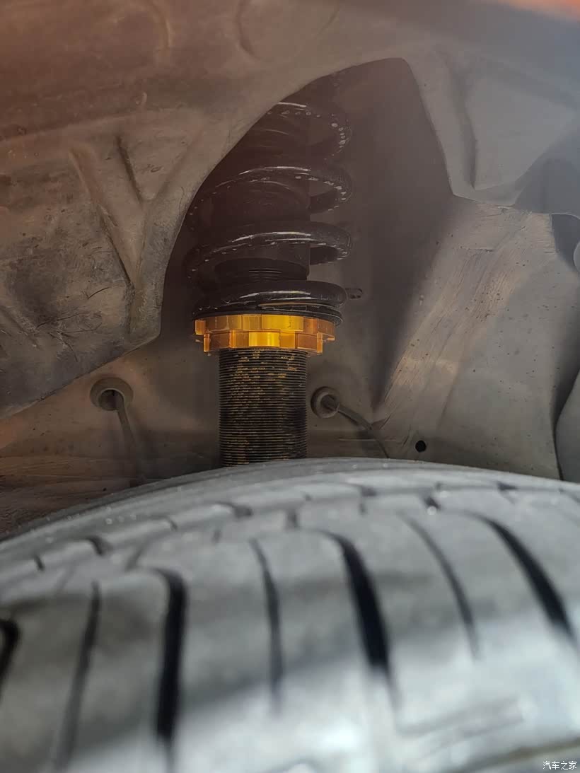 绞牙安装调试完成,测量轮胎与轮毂高度在2公分前后一样,这个车子绞牙调节追求操控舒适度兼顾最好前后全部调成10段就可以,调太高了避震很软开起来比较晃跟原车没啥区别了,所以不建议调太高,专业调试最终10段最适中的。这里提醒一下安装绞牙避震最好找专业汽车改装店去装,修理厂搞不明白的。不要把时间和金钱浪费在修理厂上面。一次装不好下次再找人调试又要单独花钱,所以找个改装店一步到位省事。