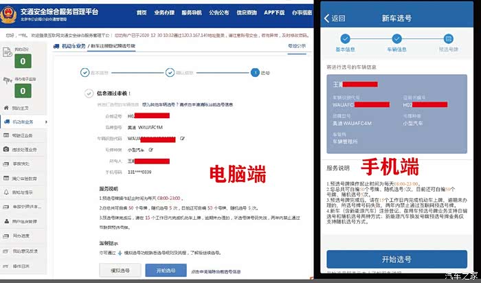 北京车牌选号分为现场选号(50个选择)和互联网选号,