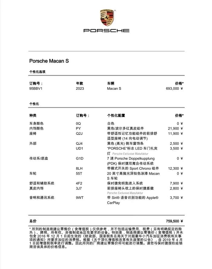 我自己车23款macan,22年3月。配置单70.5。 有意的回复