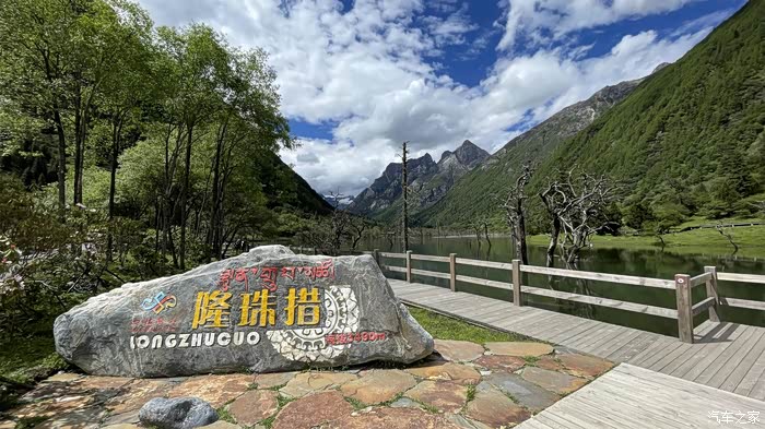 隆珠措海拔3490米,是双桥沟主要景点之一。由于山洪冲刷泥沙淤积阻塞,导致河流改道,淹死了原本在陆地生长的沙棘树。溪水中含有丰富的钙化物,沙棘树根部附积了大量钙质,从而死而不倒,成为双桥沟神话世界的一道靓丽风景。